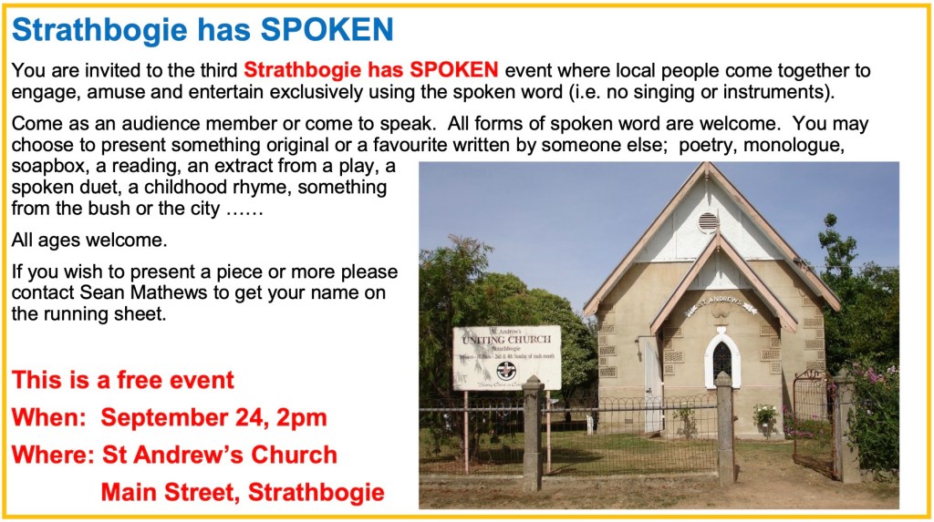 I'm walking in the evening smelling all the sounds I'm strolling through the gloaming Doing my enchantment rounds I'm catching all the moonbeams and putting them in my pocket Remembering fondly daydreams Preparing days last docket The path is lit so brightly in silver and dappled grey The water sprites dance lightly on moonlit water spray And where the cascading creek pools calmly at my feet it reflects the Milky Way I'm walking in the evening Hearing all that I can see I sense the bobuck in the tree before the bobuck senses me A tawny frogmouth silhouettes against a star bright sky With silent flight of no regret his dive is only heard by eye White shades of cockatoos perch ghostly in pairs aloft Crests rising to the "Who? Who?" of the barn owl in near croft A mother koala briefly joins me on her own purposeful path Her joey clinging grimly to her shoulders makes me laugh And then a cool spring breeze tousles my hair as if to please and praise my meandering task I'm walking in the evening touching scents borne on air I'm feeling all I'm feeling I'm shedding care by care Honeysuckle's sweet subtle breath permeates all around Bullrushes whisper secrets kept Chocolate lilies abound The swamp gum rustles above me The peppermint towers high The snow gum looks so lovely as I tread quietly by Flowering gums are tipped with fairy tutus The manna creaks as it sways All sprinkle the night with eucalyptus scent whispering to the wind, “Australian bush” they say And then on the horizon I see my home It calls me from my roaming To sit in darkness without a sound I savour all the night has shown me while walking in the evening